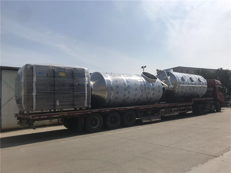 2020年3月25日東鴻第一個百萬項目第二次發(fā)貨了,一大早就請來吊車發(fā)貨,一天發(fā)4車廢氣處理設(shè)備,車車都是17.5米大拖頭,最后一車發(fā)完已經(jīng)是夜里了