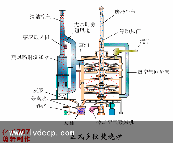 立式多段焚燒爐 ?多段立式焚燒爐結(jié)構(gòu)緊湊,操作彈性大,適用于各種污泥的焚燒處置懲罰多段爐的污泥自上而下進行干燥和焚燒,焚燒后的氣體在爐內(nèi)上升,在頂部與處于干燥階段的含水率為65%一75%的泥餅?zāi)嫦蚪佑|,對氣體起到一定脫臭作用。