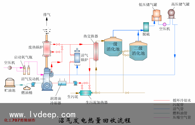 沼氣發(fā)電熱量回收流程?沼氣發(fā)電系統(tǒng)能積極、有效地利用沼氣,可以將沼氣中約30%的能量變?yōu)殡娏Γ?0%的能量變?yōu)闊崮堋T谖鬯?span style="color: green;">處置懲罰廠中可利用這一熱量給消化池進行加熱。